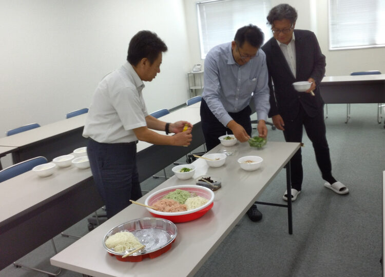 お取引先様よりお中元でいただいた素麺を、ランチタイムに本社のみんなで美味しくいただきました。